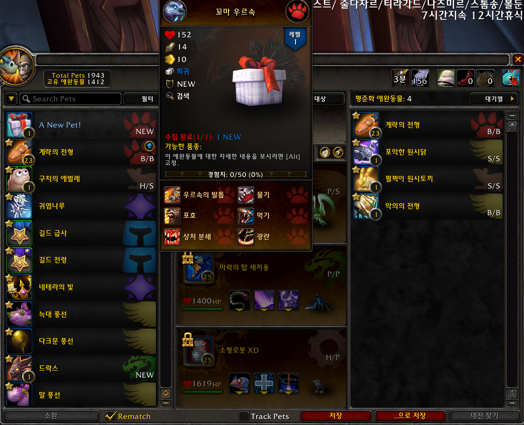 2022.06.29 꼬마 우르속 획득 1412번째 애완동물