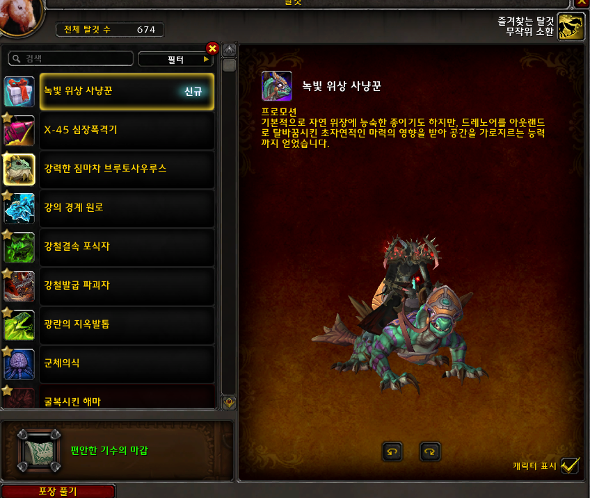 2022.07.01 녹빛 위상 사냥꾼 획득 674번째 탈것