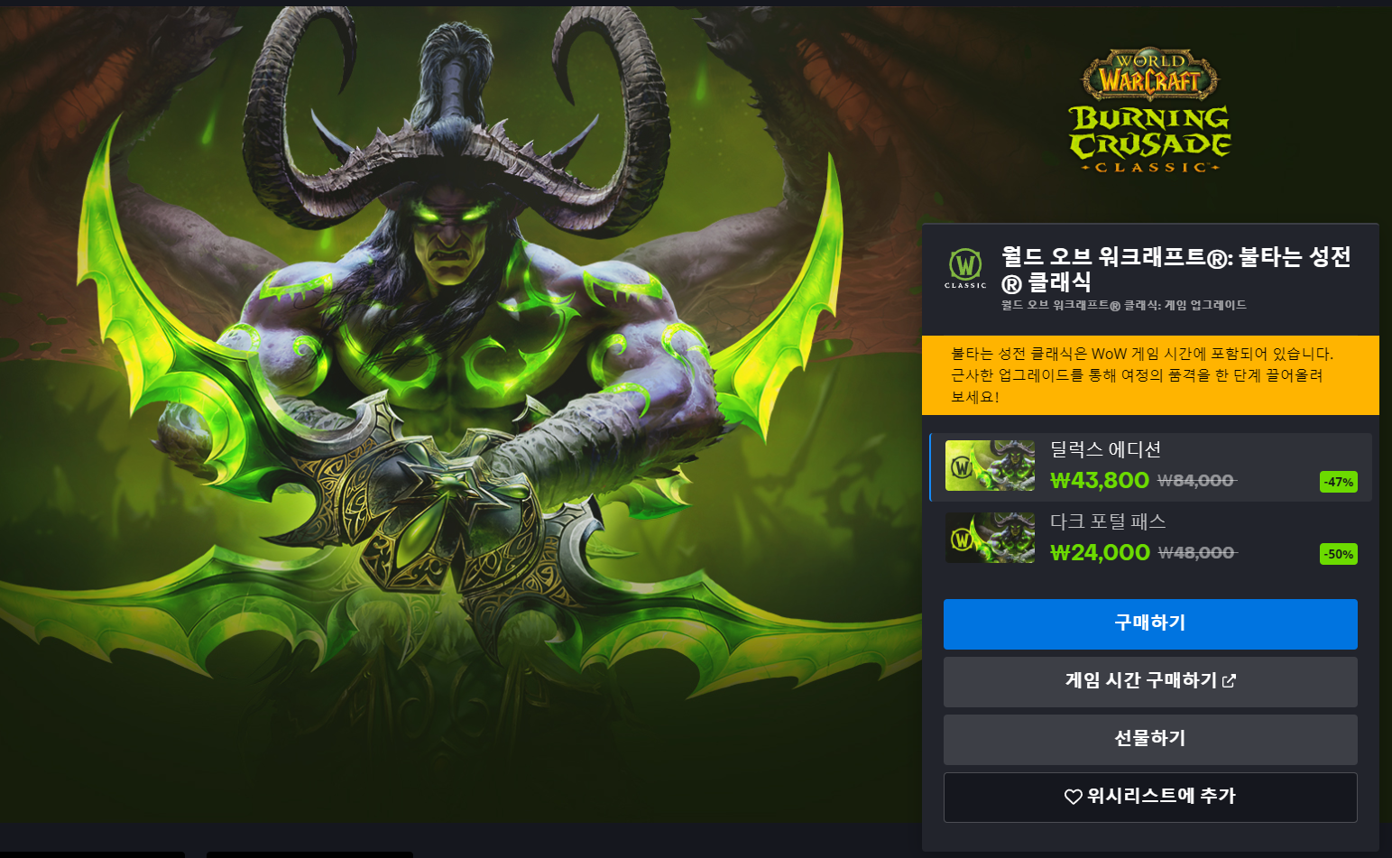 21년도에 불성클래식이 나왔고 딜럭스 에디션을 구매하면 본섭을 하는 유저에게도 탈것을 주었습니다. 그런데 클래식을 하지도 않는데 8만원내고 구매하기는 너무 아까워서 고민하고있다가 이번 여름할인에 구매하기로 마음먹었습니다.