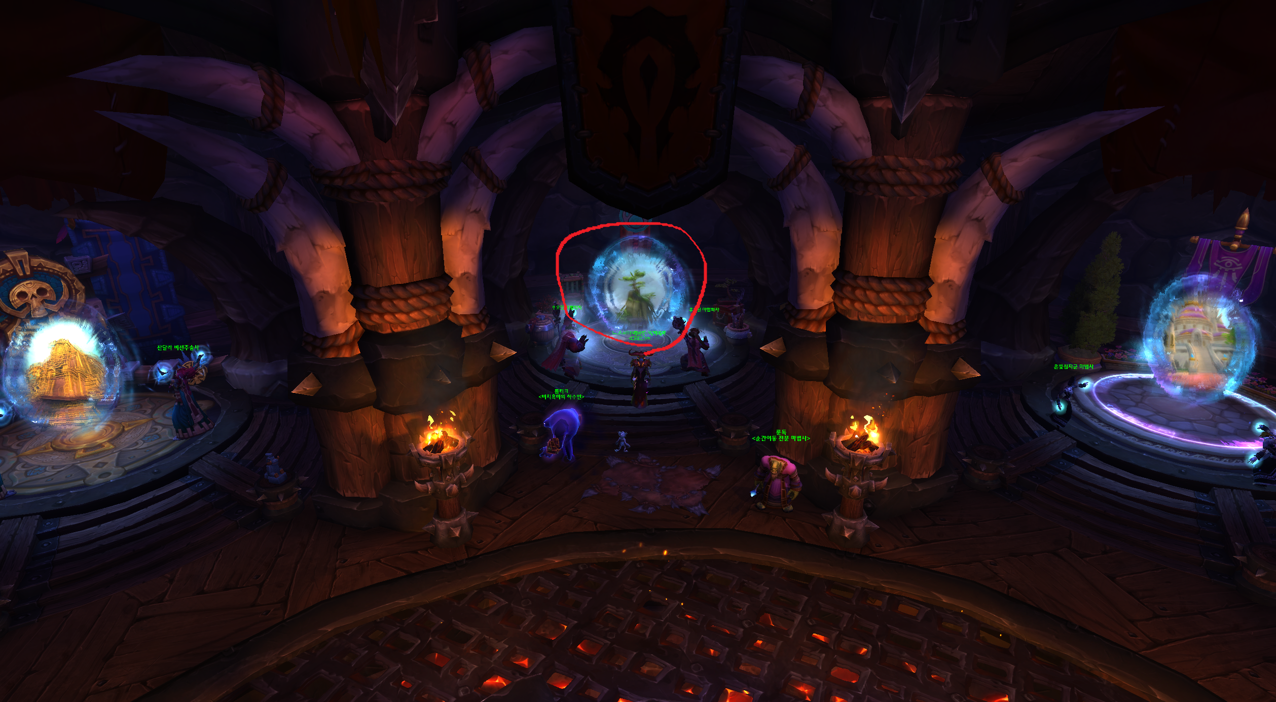 대격변은 정말 포탈시스템이 잘되어있습니다. 오그리마에서 각지역으로 가는 포탈을 타면됩니다.