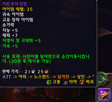2017.05.14 키린 토 반지 획득 10점짜리 해당업적은 리치왕의 분노 달라란(구달라란)에서 키린 토의 인장, 키린 토 고리, 키린 토 실반지, 키린 토 반지 4개중에 1개를 구입하면 업적이 달성됩니다.