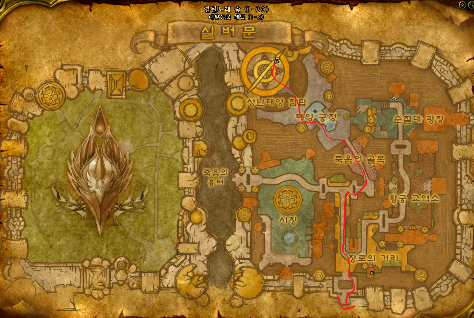 정기의 오두막(오우거 차원문) 이용 드레노어 전지역 이동가능