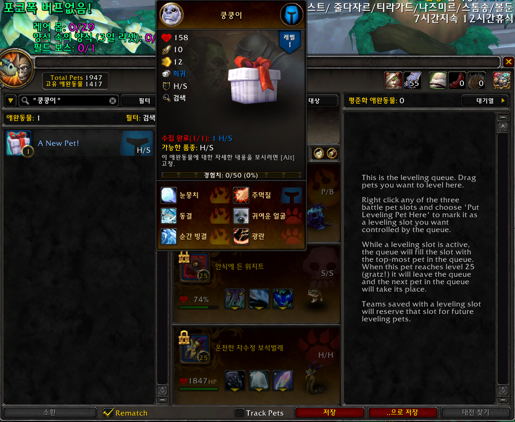 쿵쿵이 애완동물은 블리자드샵에서 구매하는 애완동물입니다.