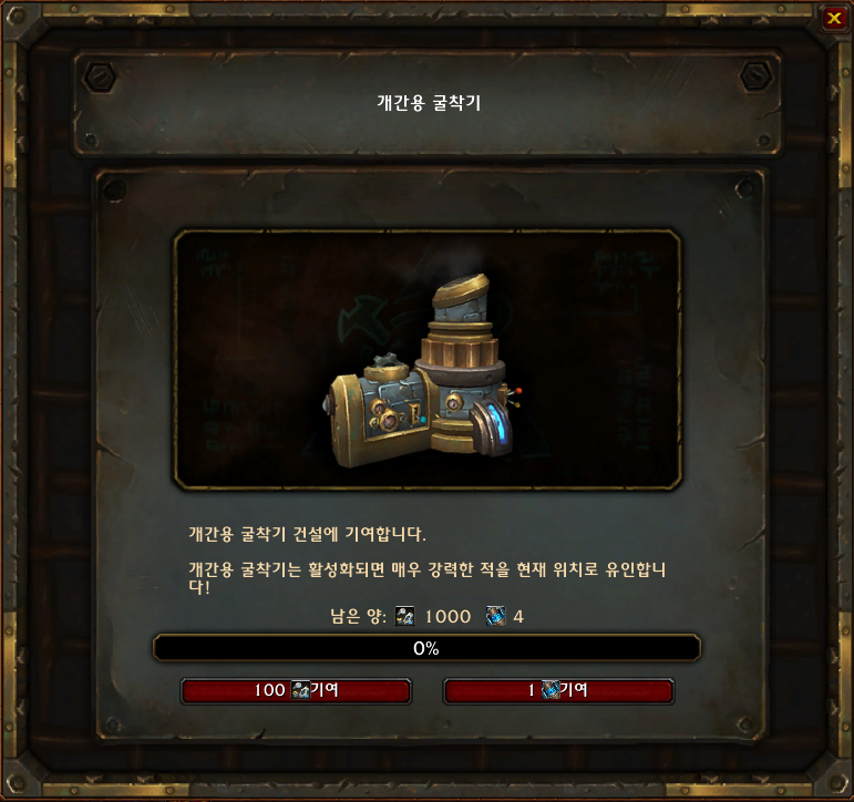 개간용 굴착기를 활성화 시키기 위해서는 예비부품 1000개 마력전지 4개가 필요합니다.