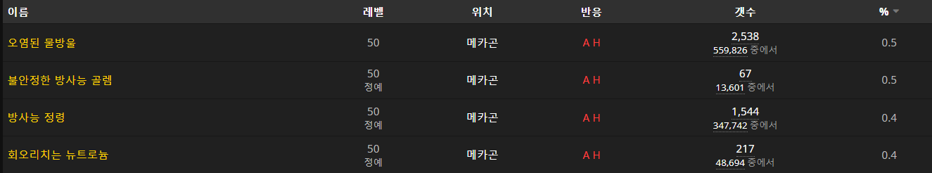 오염된 물방울 / 불안정한 방사능 골렘 / 방사능 정령 / 회오리치는 뉴트로늄을 잡으면 획득가능합니다.