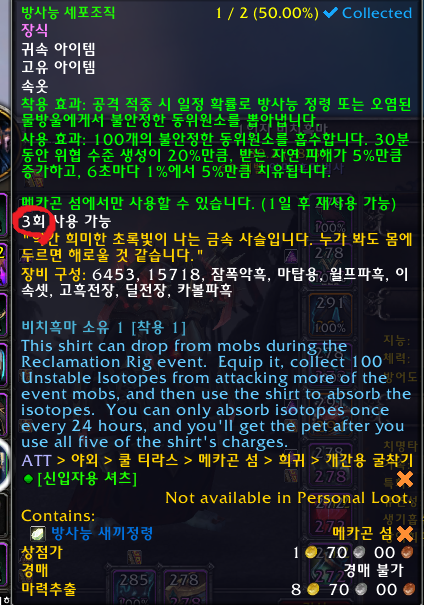 불안정한 동위원소 아이템이 몹들에게서 드랍됩니다. 불안정한 동위원소 100개를 모으고 속옷을 클릭하면