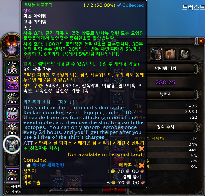 방사능 새끼정령은 격전의 아제로스확장팩 애완동물로 메카곤에서 획득가능한 애완동물 입니다.