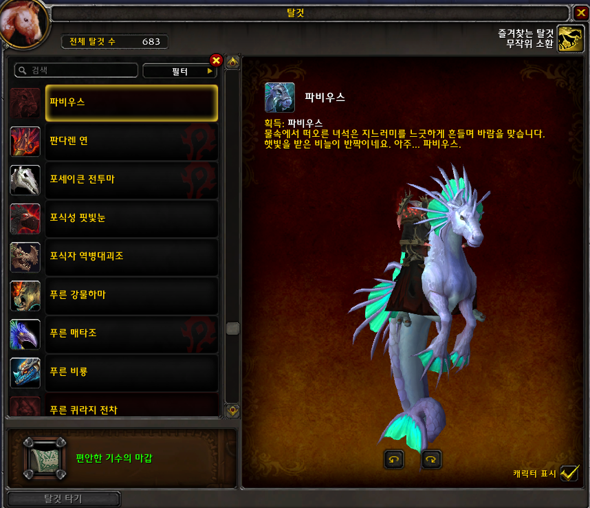 | [와우탈것]죽음군주의 썩은무리 제압자 - 죽기 직업탈것 (0) | 2022.07.10 |