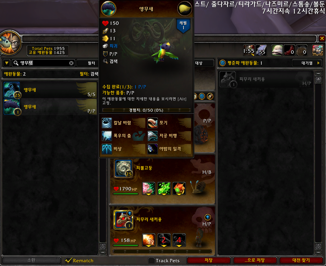 2022.07.23 앵무새 획득 1425번째 애완동물