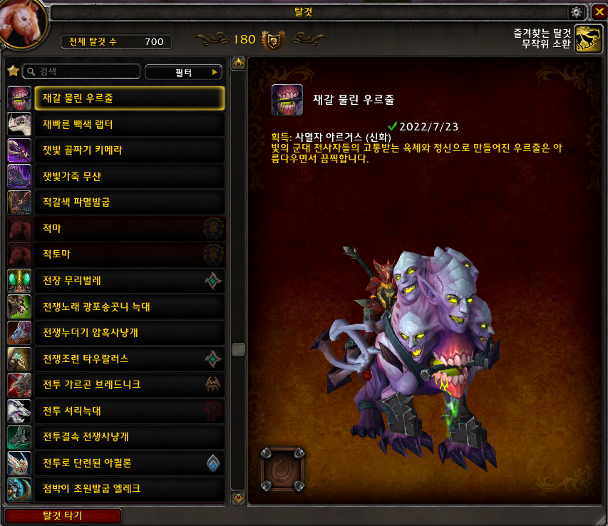 2022.07.23 재갈 물린 우르줄 획득 700번째 탈것