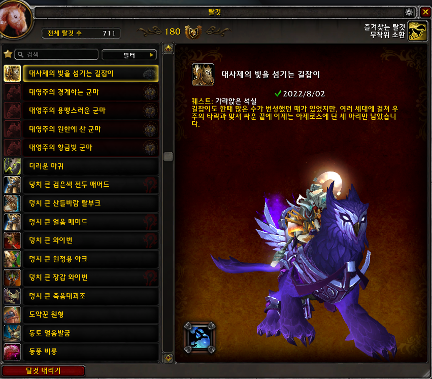 2022.08.02 대사제의 빛을 섬기는 길잡이 획득 711번째 탈것