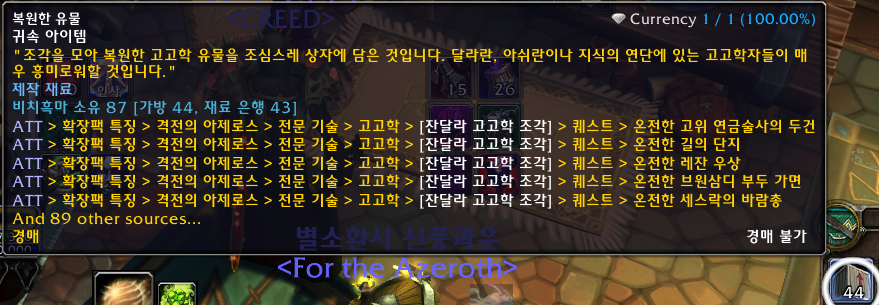 복원한 유물이 없다면 판다리아 영원꽃 골짜기 고고학상인에게가서 사마귀만 나오게하는것을사서 사마귀유물을 계속해서 파시면 됩니다.