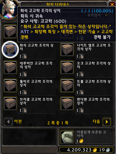 화석고고학을 계속 복원하다보면 5가지희귀중에 한가지가 뜹니다.