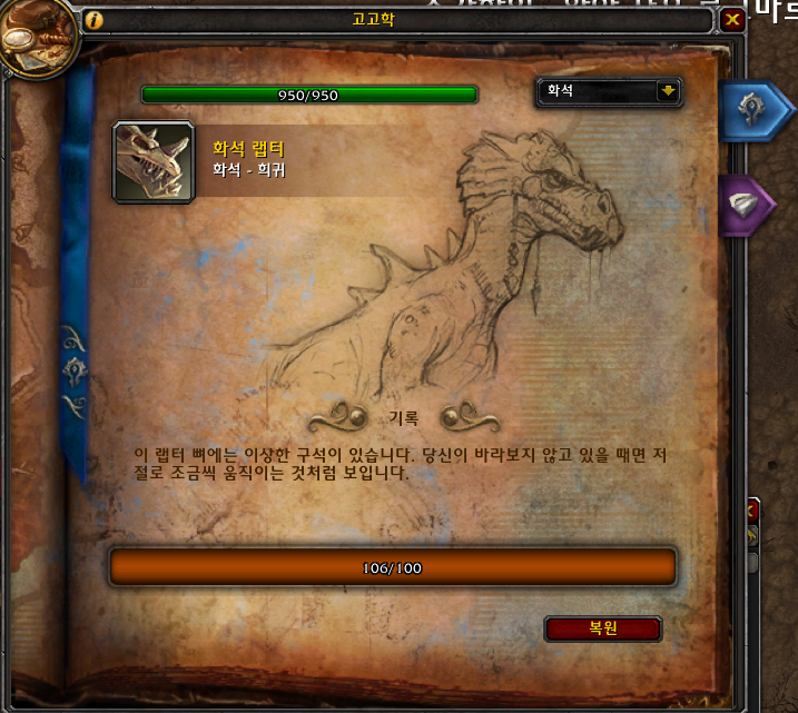보통 다른지역 고고학을 하였다면(판다 고고학 드군고고학 군단고고학 등등) 복원한 유무이 많이 있을것입니다.