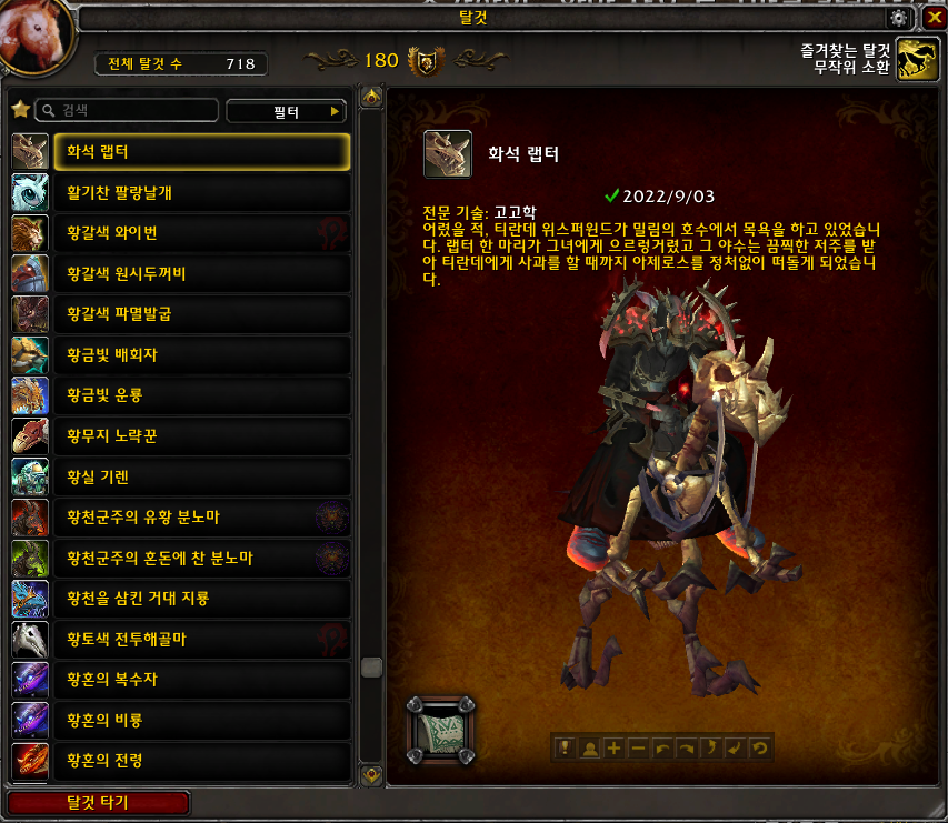 2022.09.03 화석 랩터 획득 718번째 탈것