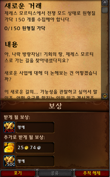 어둠땅이 끝나면 새로운 거래 퀘스트가 사라질텐데 그전에 최대한 많이 해놓는것을 추천합니다.