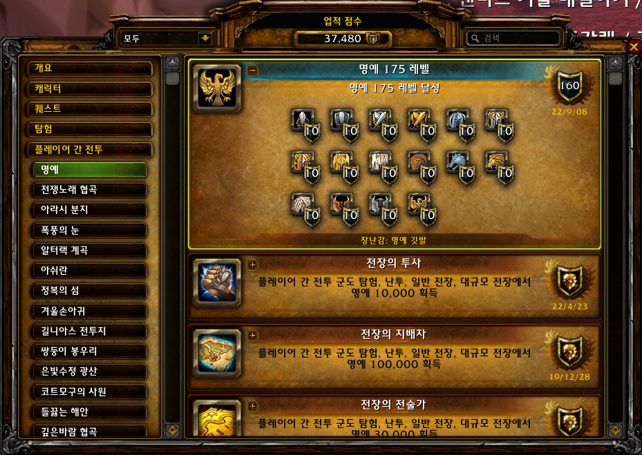 | [와우업적]명예 150레벨 (0) | 2022.07.27 |