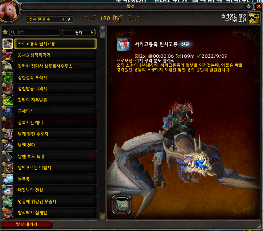 2022.09.09 서리고룡족 원시고룡 획득 719번째 탈것