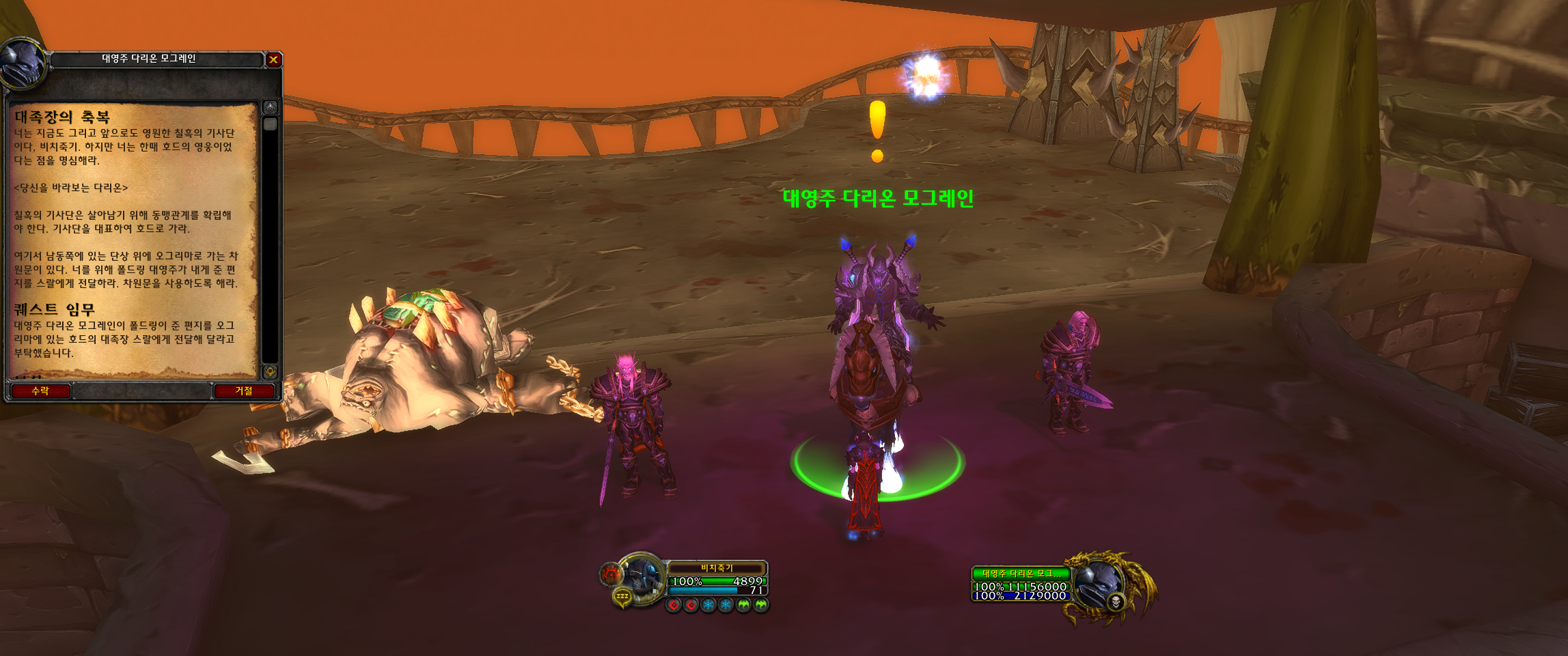 처음 죽기를 생성하면 다음과 같은 화면입니다. 리치왕이 퀘스트를 줍니다.