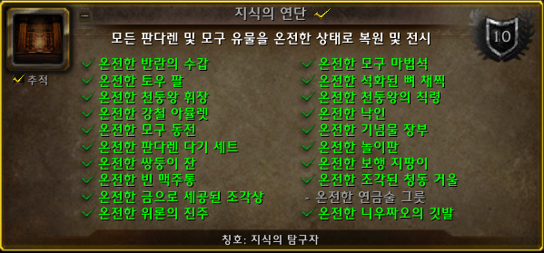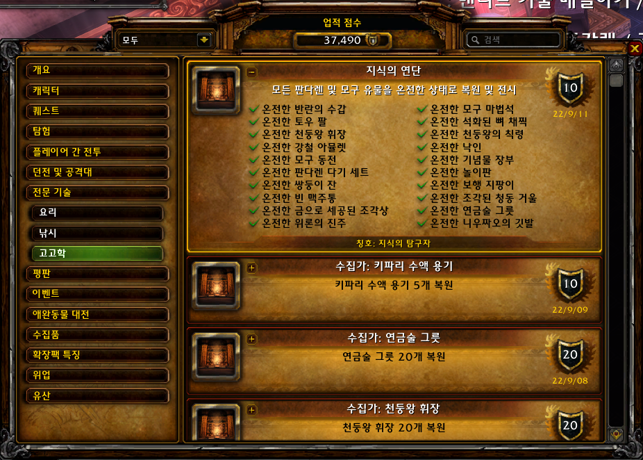 판다렌 고고학과 모구고고학을 전부 복원하는 업적입니다.