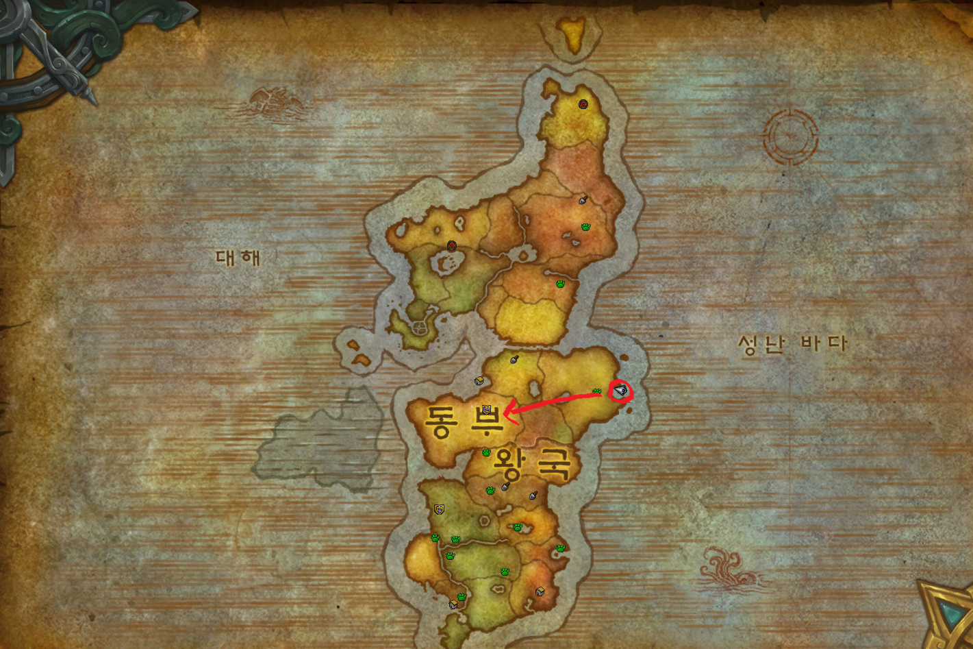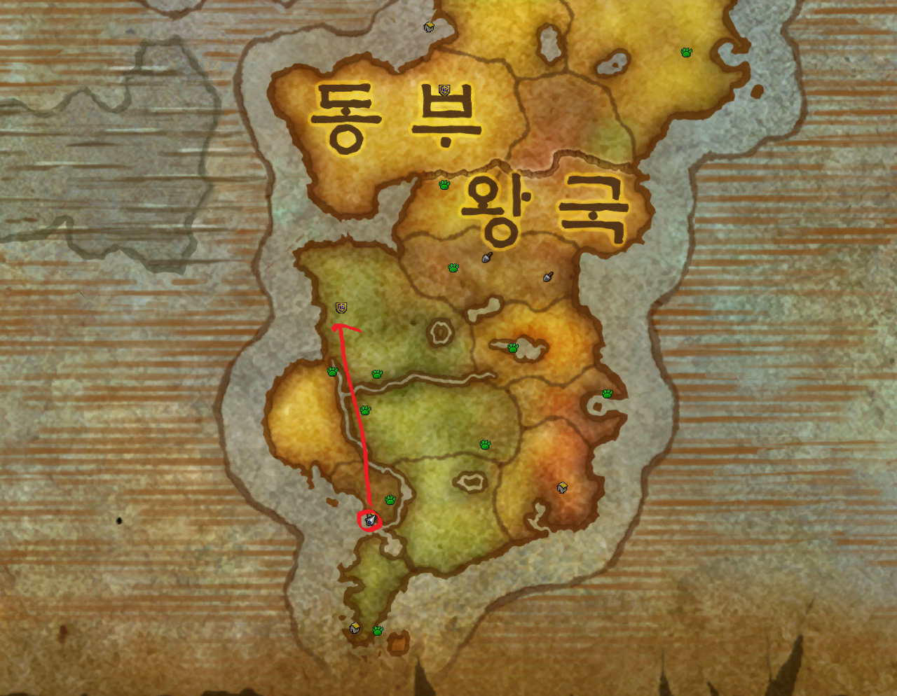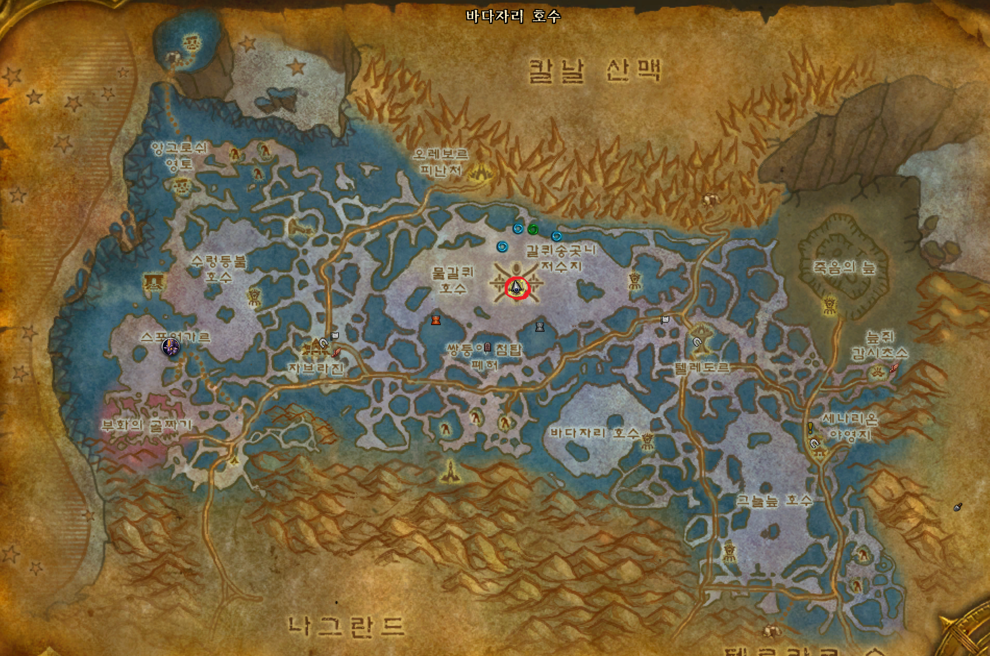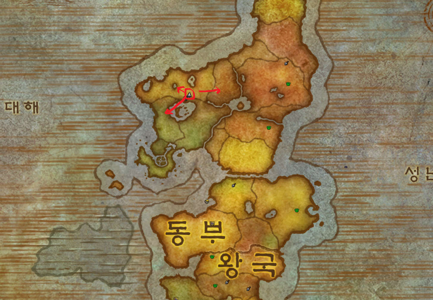 저습지 / 모단 호수 / 이글거리는 협곡 / 황야의 땅 / 불타는 평원 가는법