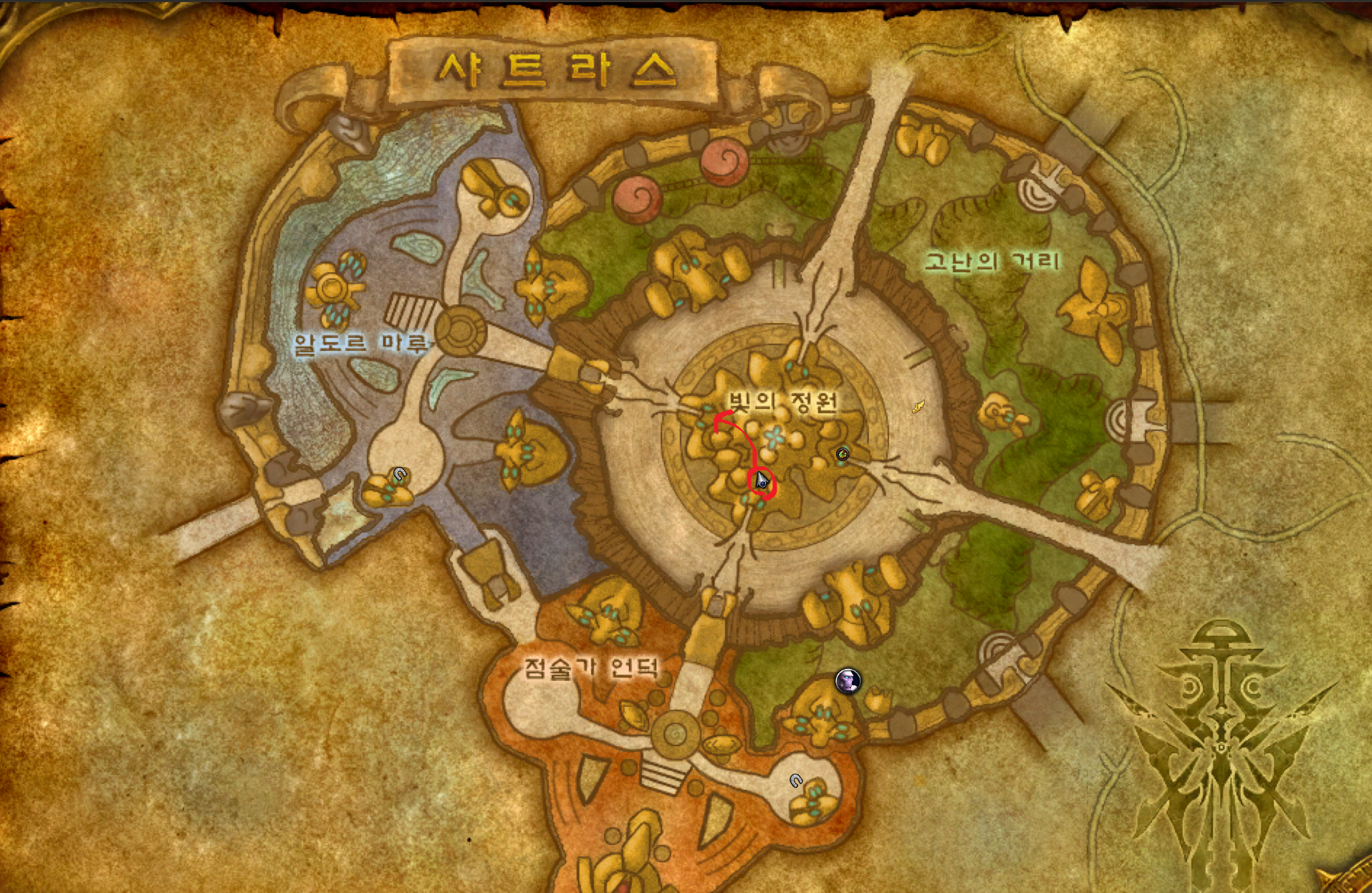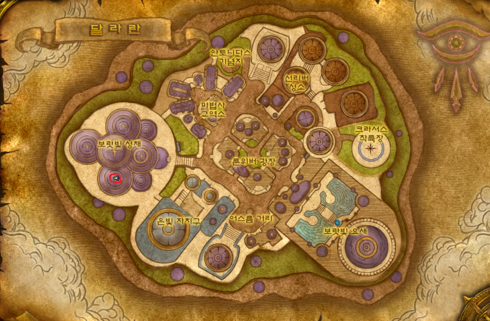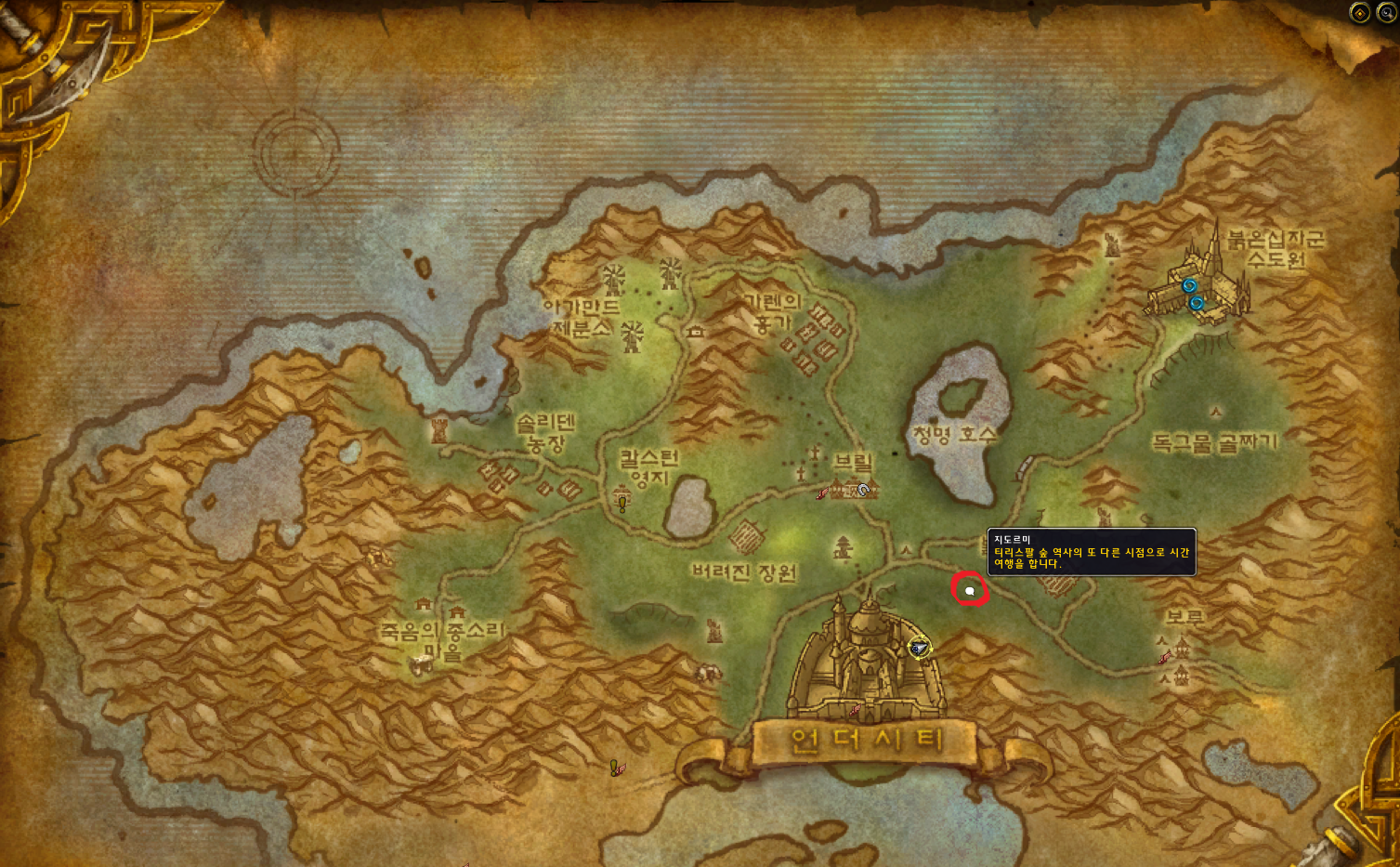 다르나서스는 실바나스에 의해 파괴되었기 때문에 다르나서스에 가려면 지도르미에게 말을걸어 꼭 과거위상으로 되돌려야지만 갈수 있습니다.