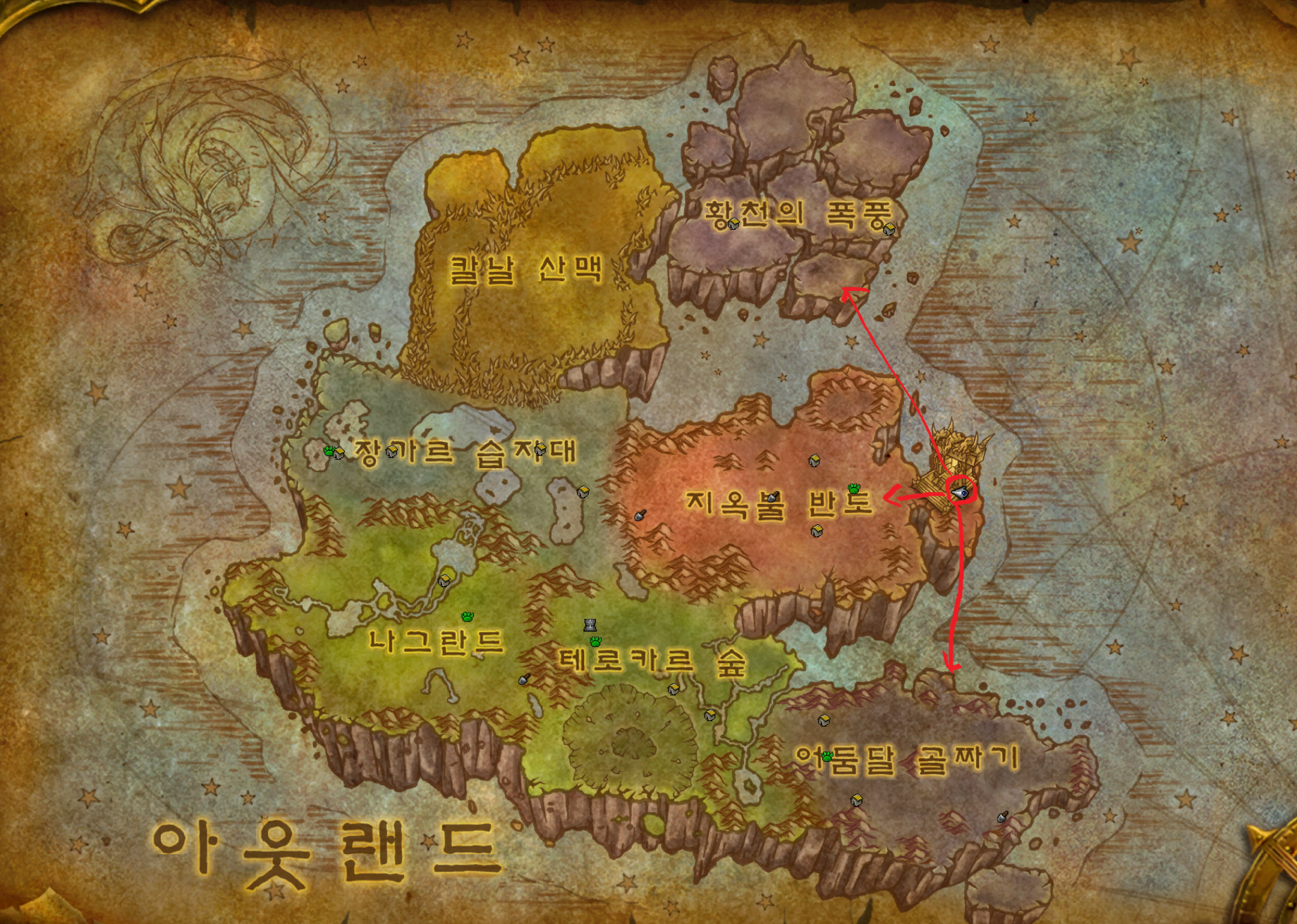 저는 부캐라서 웨이포인트를 몇군대 못찍었는데 하이잘 산, 불모의땅, 운고로 분화구 등등 웨이포인트만 찍어놓으면 갈수있습니다.