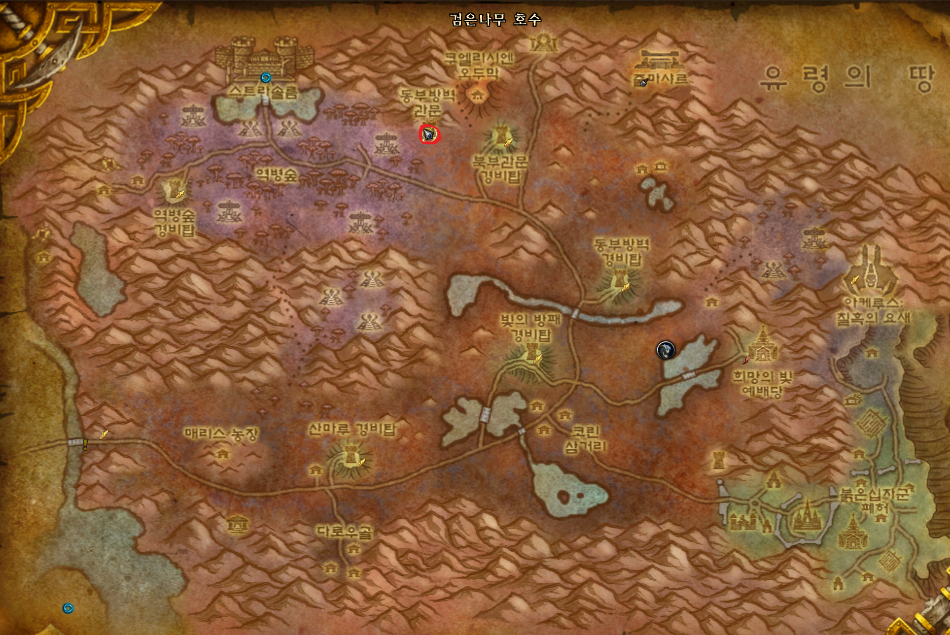 죽기는 죽음의 관문이라는 스킬로 칠흑의 요새로 갈수있고 동부역병지대로 쉽게 갈수있습니다.