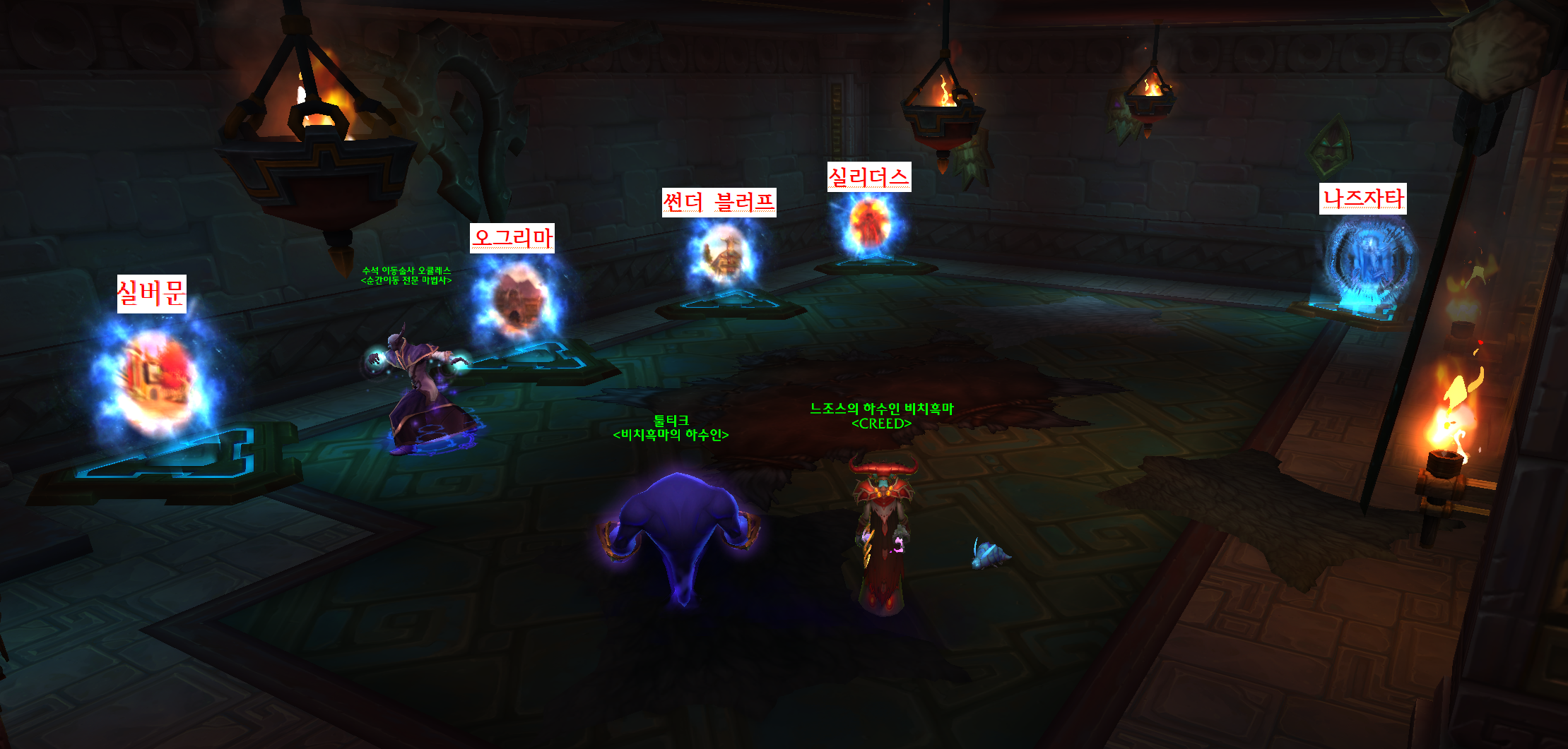 법사는 차원문과 순간이동으로 오그리마 / 언더시티 / 썬더블러프 / 실버문 / 스토나드 / 샤트라스 / 노스달라란