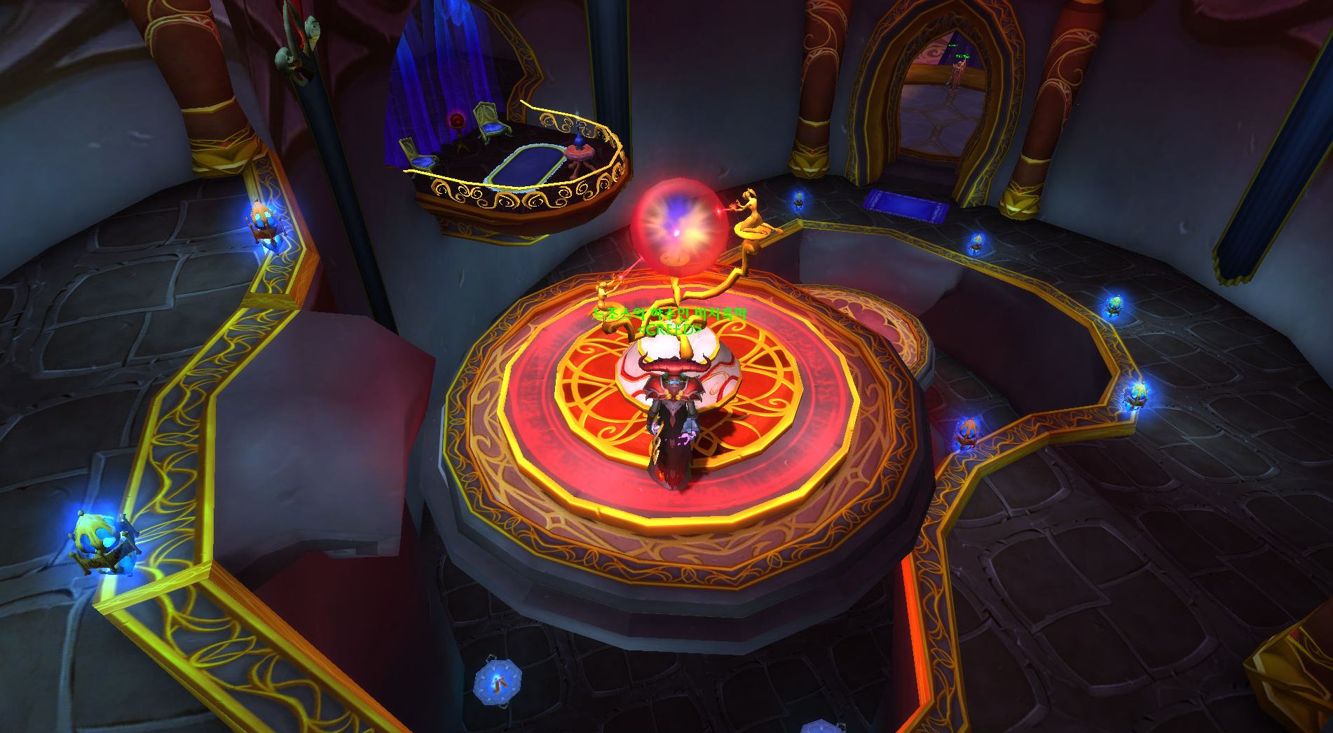 언더시티 도착하자마자 옆에 보이는 포탈이 지옥불반도 포탈입니다. 만약에 언더시티가 역병때문에 없는 위상이라면 지도르미에게 말을걸어 옛날 위상으로 돌리시면 됩니다.