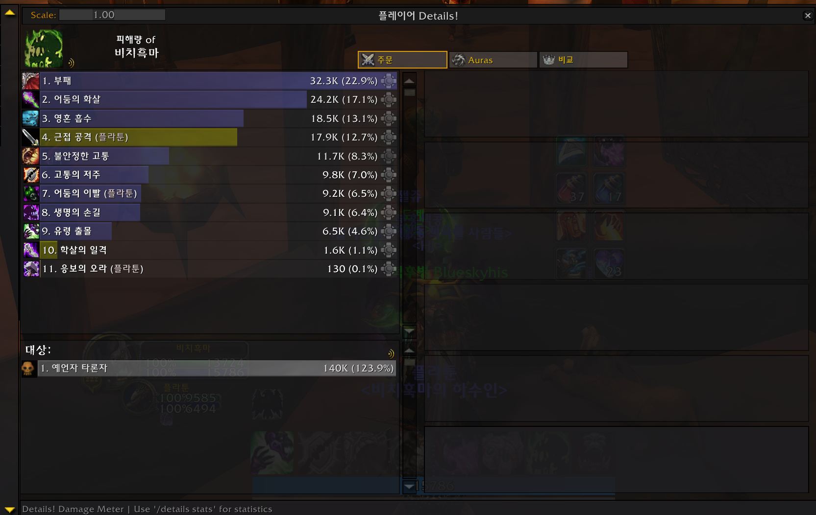 딜사이클이 단순하지도않고 지금 어둠땅처럼 어렵지도않고 와린이들이 하기 딱적당한것 같습니다. 지금 어둠땅 딜사이클이 쉬워졌으면 좋겠다는 뜻은 아닌데 뭐랄까 그냥 딜하기에 부담이 없다고 해야하나 와우를 처음 접해보는 분들이 재미있게 즐길수있는 난이도 인것 같습니다.