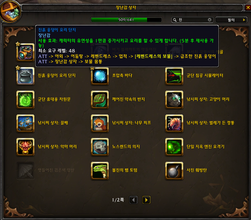 2021.01.12 진흙 웅덩이 요리 단지 획득 509번째 장난감
