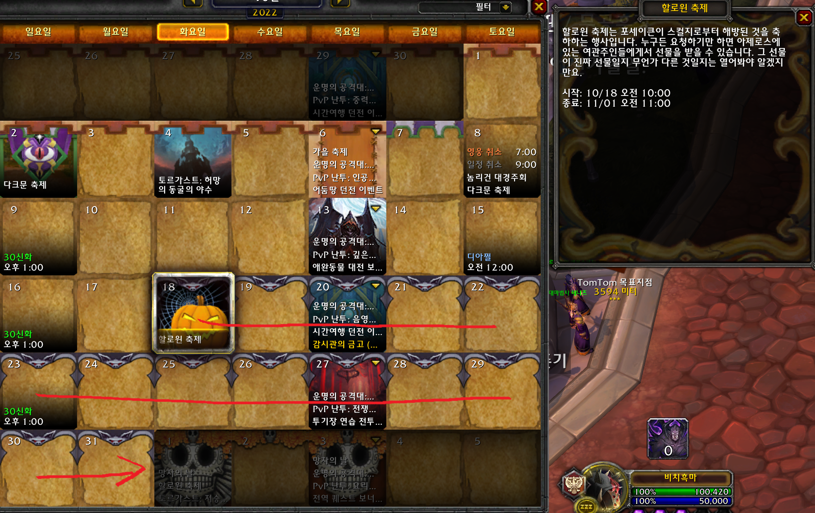 2022년 할로윈은 10월18일부터 11월 1일 아침11시까지 입니다.