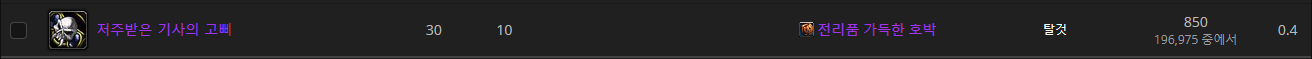 무작에서 저주받은기사를 완료하면 전리품 가득한 호박 을 주고 이걸 까면 나옵니다.