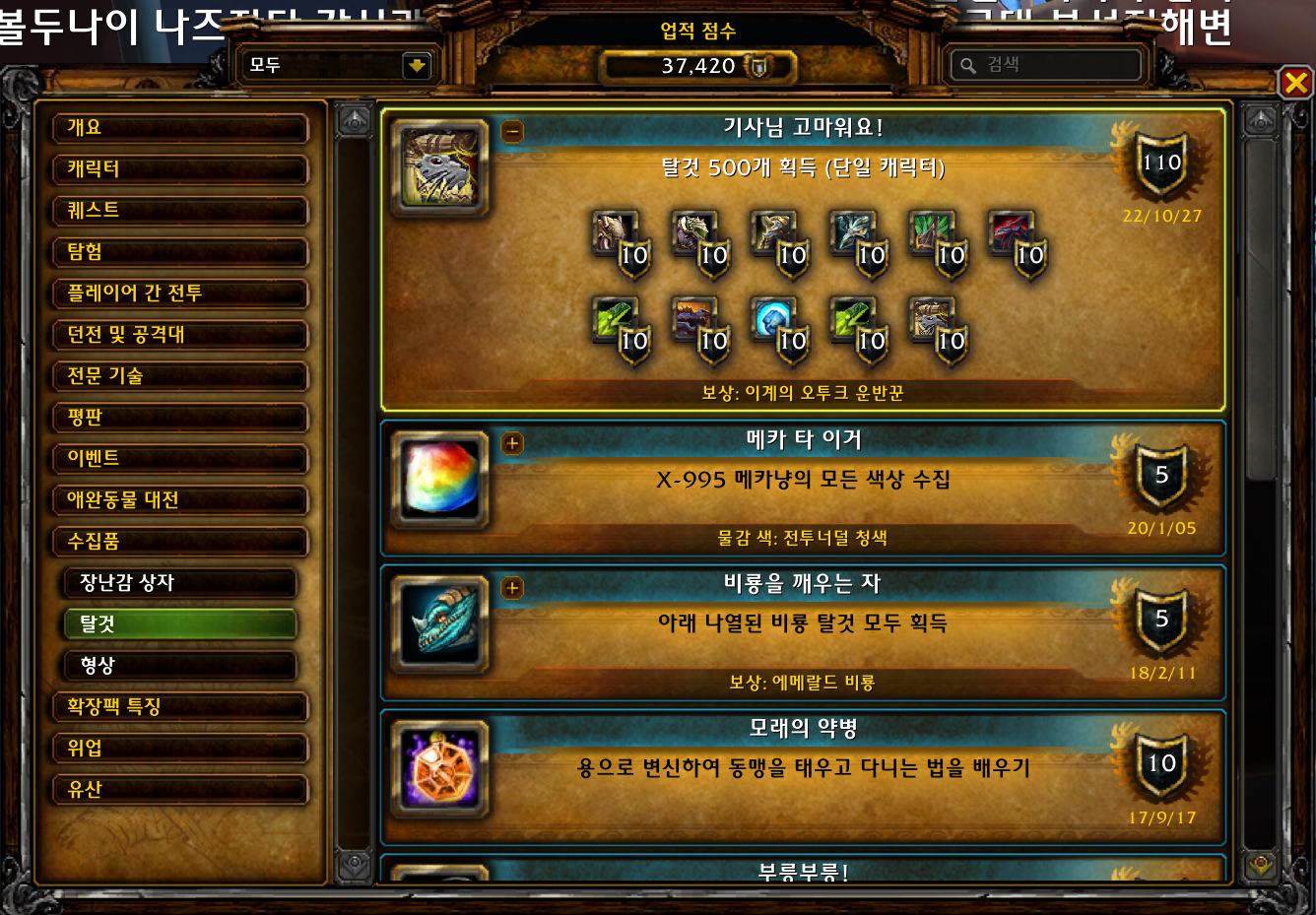 기사님 고마워요! 업적은 단일캐릭터로 탈것 500개 획득하는 업적입니다.
