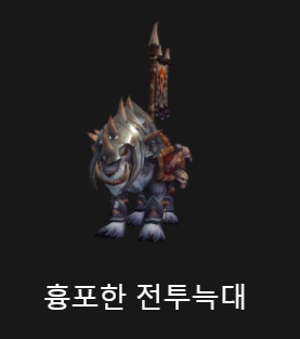 흉포한 전투 틈발굽(호드전용) - 격아 1시즌 흉포한 안장으로 구매가능 구매하면 얼라에 흉포한 전투 강물하마도 줌