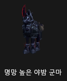 흉포한 검은색 해골군마(호드전용) - 격아 2시즌 흉포한 안장으로 구매 구매하면 얼라에 흉포한 검은색 전투 밤호랑이도 줌