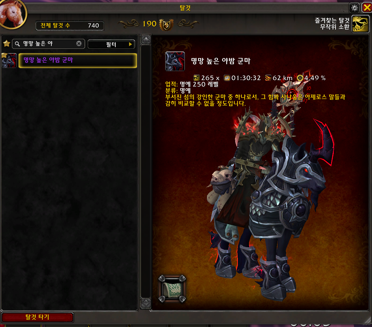 250랩 보상은 명망 높은 야밤 군마 입니다.