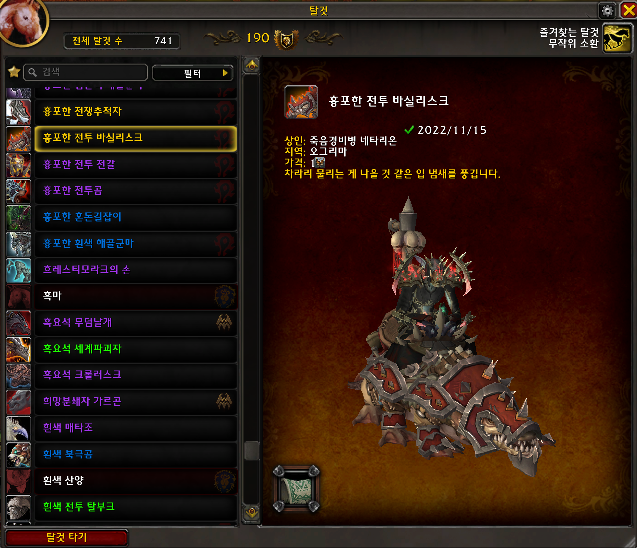 2022.11.15 흉포한 전투 바실리스크 획득 741번째 탈것