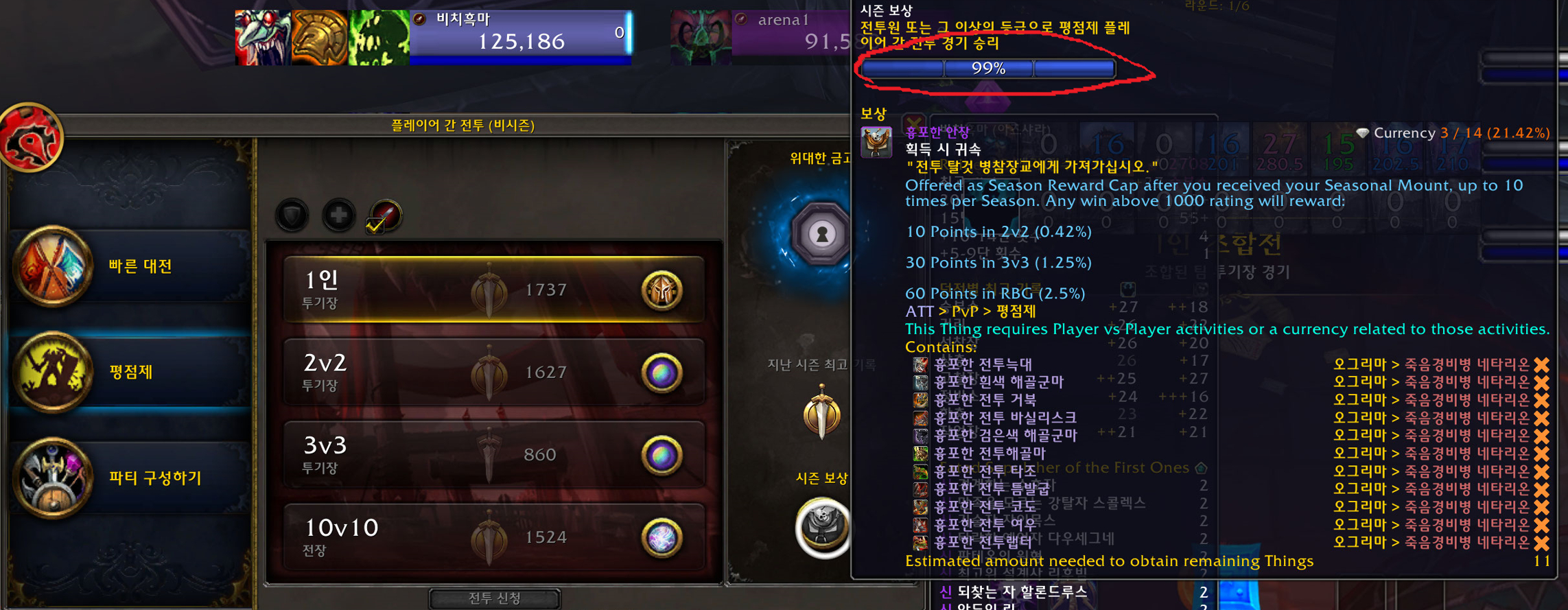 시즌보상에 마우스를 가져다대면 몇%인지 나옵니다. 100%가되면 흉포한 안장 1개를 주는데 팁이라면 부계정이있다면