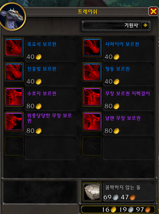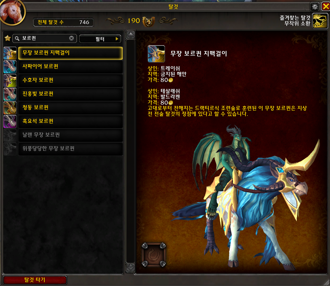 흑요석 보르퀸/사파이어 보르퀸/진홍빛 보르퀸/청동 보르퀸/날쌘 무장 보르퀸/무장 보르퀸 지맥걸이/수호자 보르퀸/위풍당당한 무장 보르퀸은 드랙티르 종족탈것입니다.
