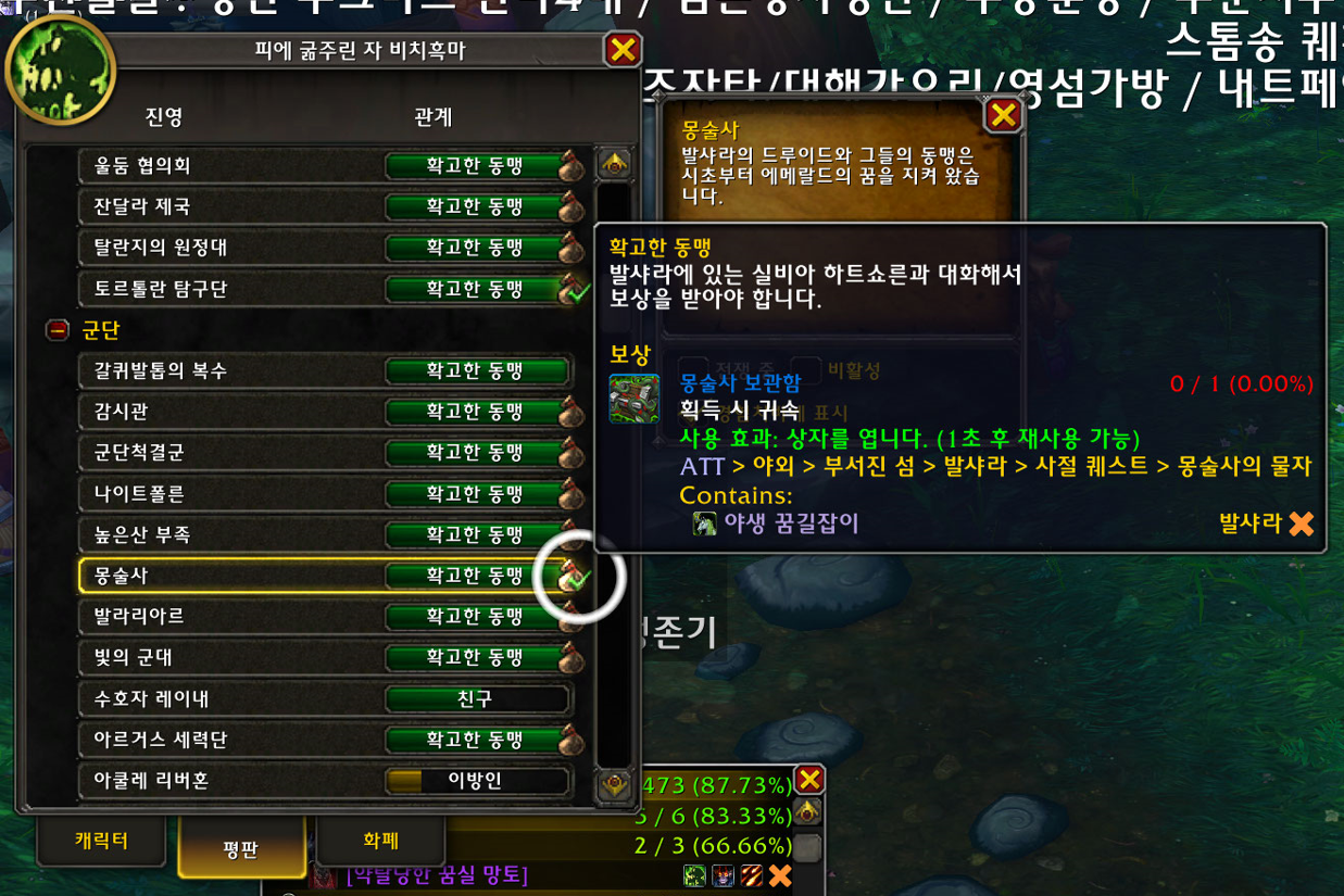 요즘 18%평판버프가 있어서 그나마 잘오르는것 같습니다. 어둠땅나오고 5번째까서 5트에 나왔네요