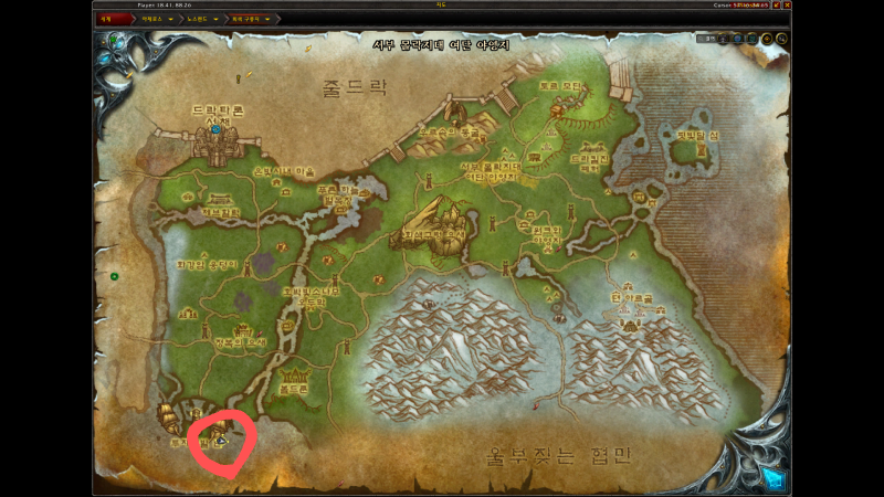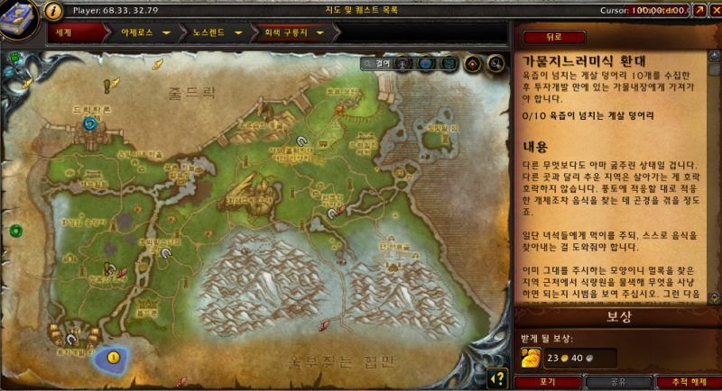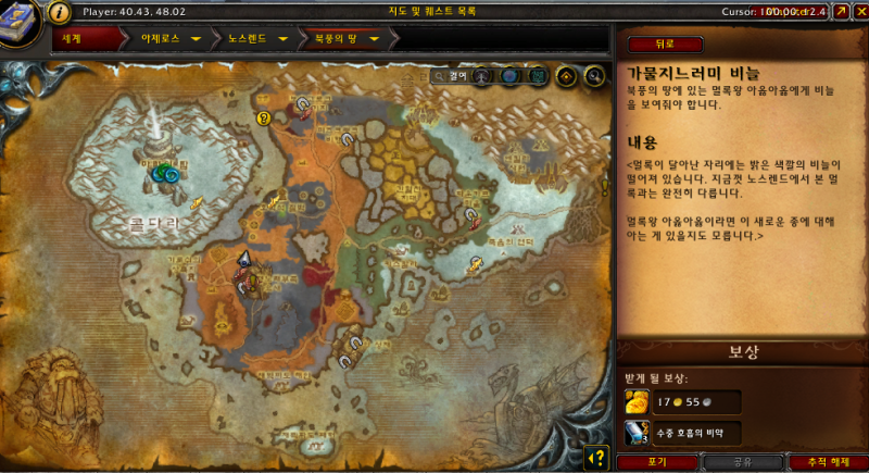 시작퀘스트 위치는 노스렌드 회색구릉지 입니다.