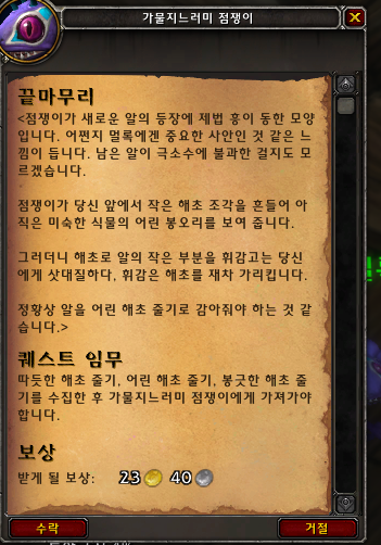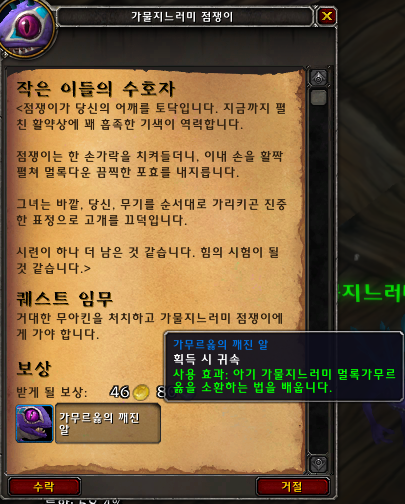 퀘스트를 받으면 노스렌드 북풍의 땅에 있는 멀록왕 아옳아옳을 만나라고합니다.