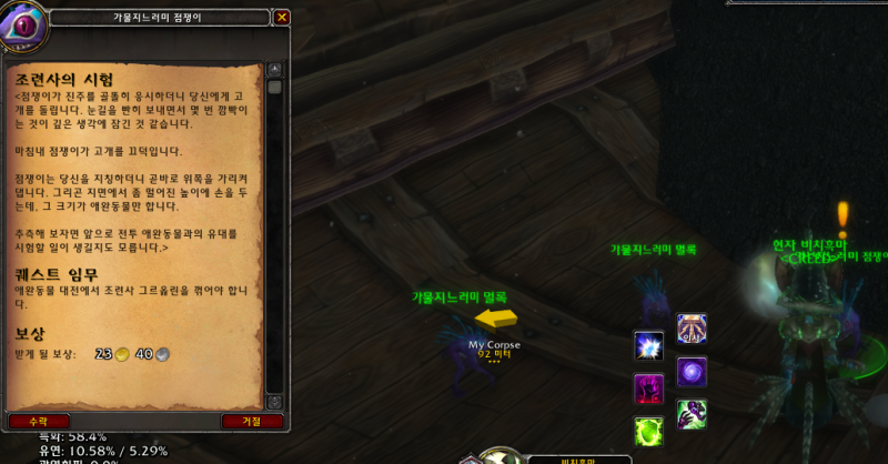아옳아옳은 수중호흡 물약을 주고 퀘스트를 줍니다. 다시 회색구릉지로 가서 게살덩어리를 모아야하는데