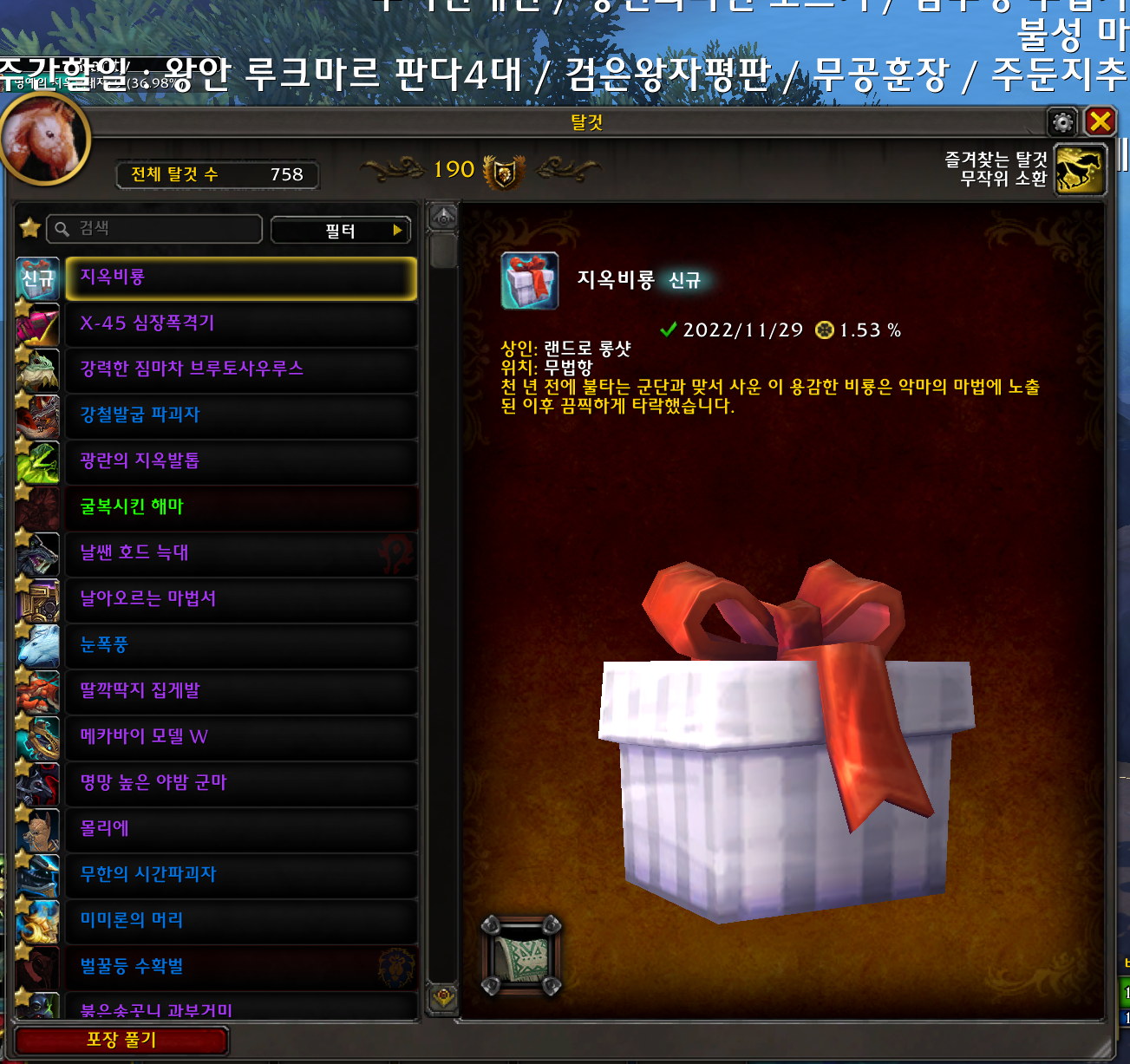 2022.11.29 지옥비룡 획득 758번째 탈것