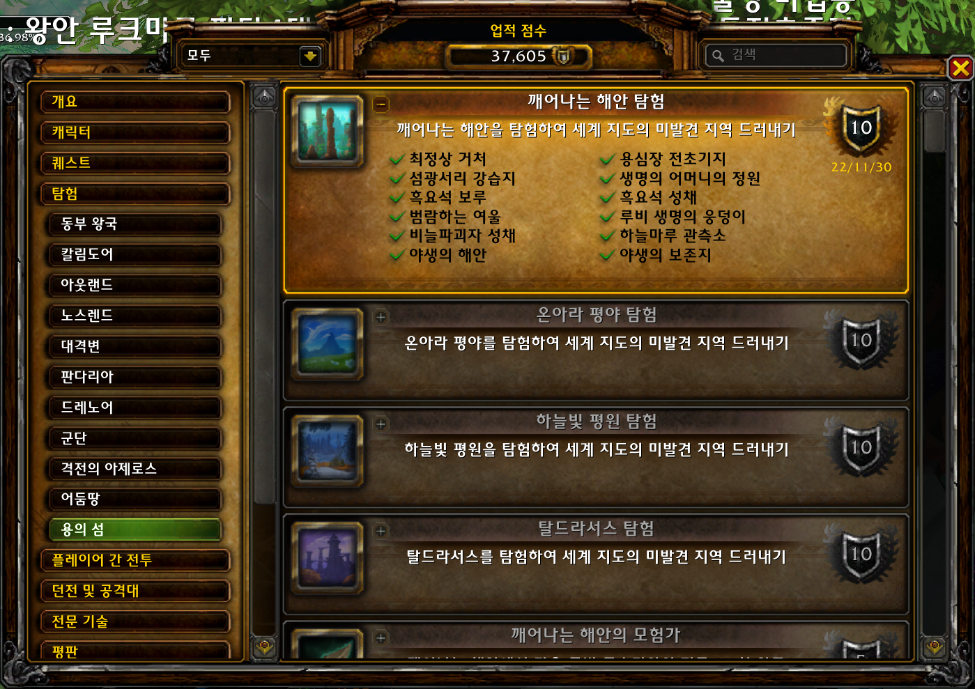 2022.11.30 깨어나는 해안 탐험 획득 10점짜리 37605점