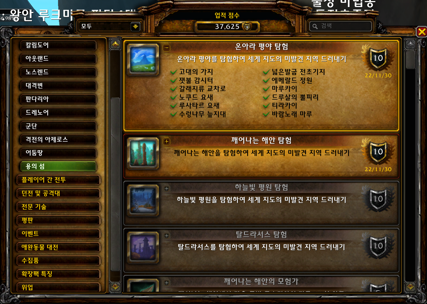 | [와우업적]탈드라서스 탐험 (0) | 2022.11.30 |