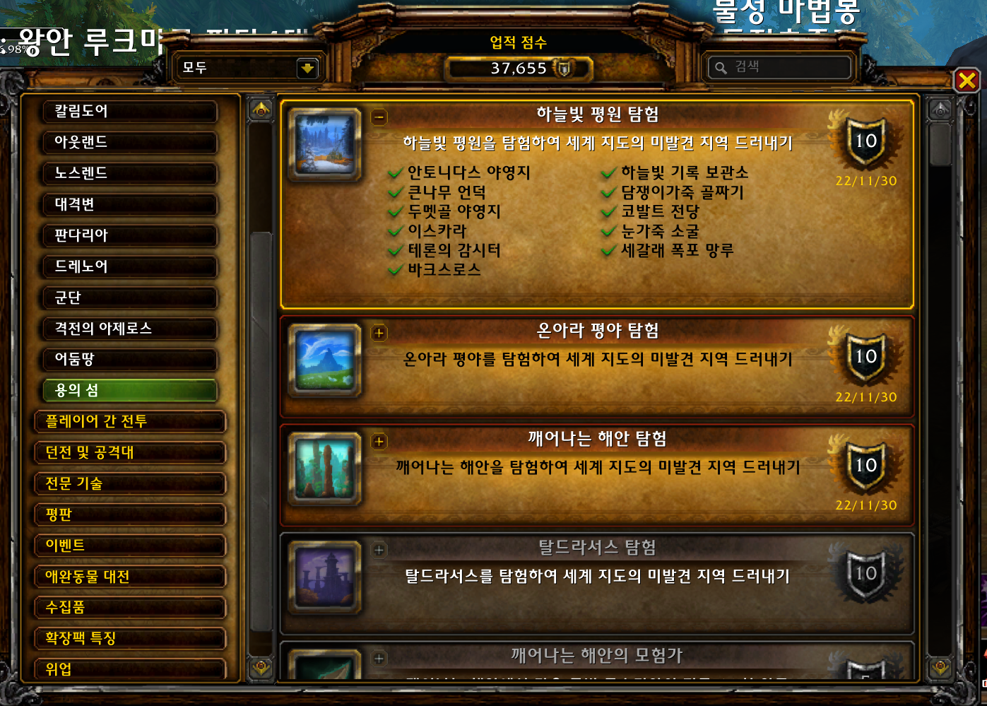| [와우업적]탈드라서스 탐험 (0) | 2022.11.30 |
