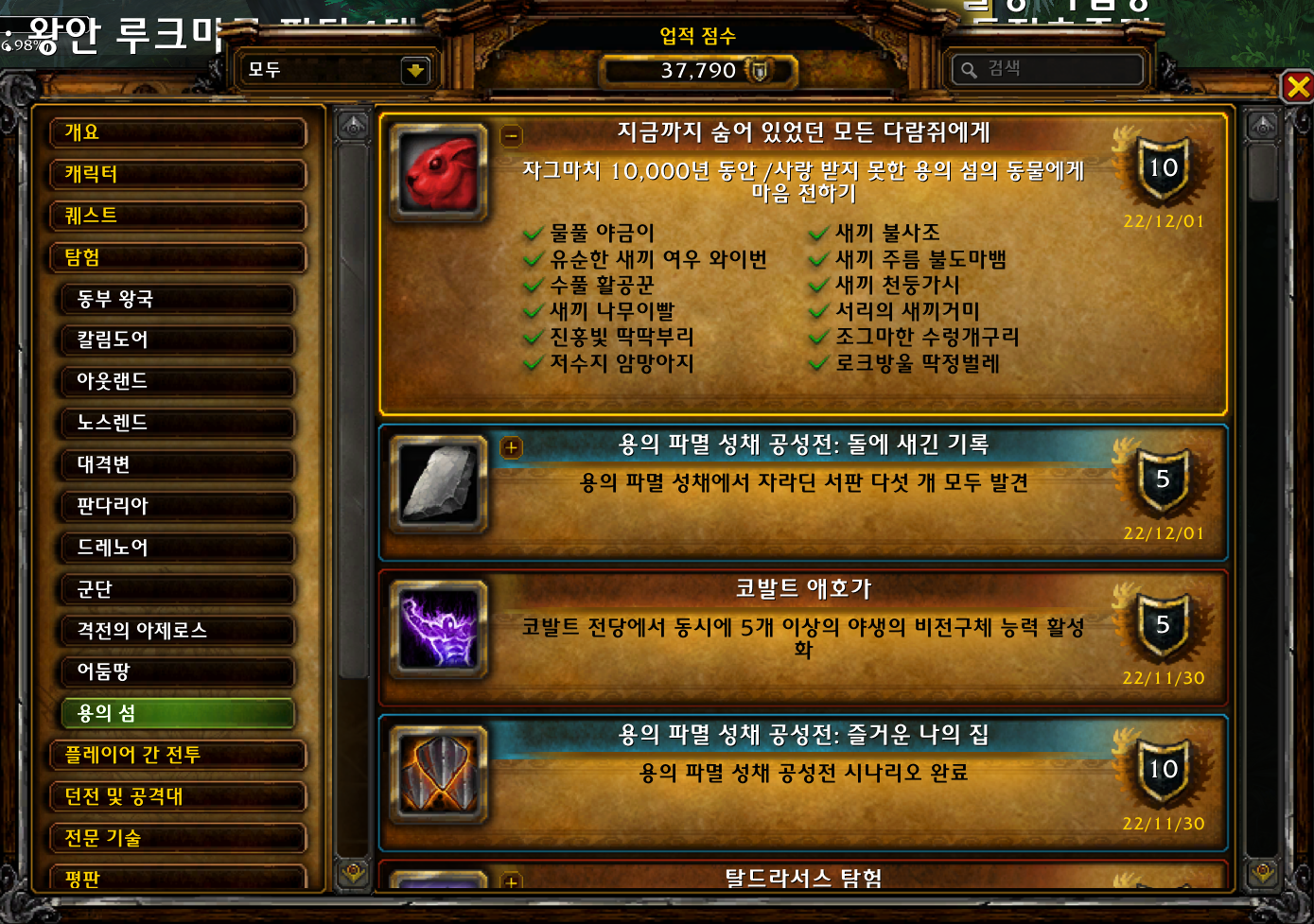 | [와우업적]용비늘 원정대: 최정상 정복 (5) | 2022.12.03 |